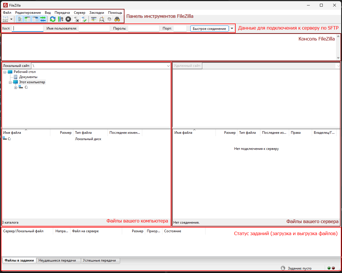 - Запустите FileZilla.