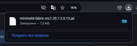 - То же самое выполняю для мода Fabric API, так как запуск без него выводит ошибку с зависимостями.