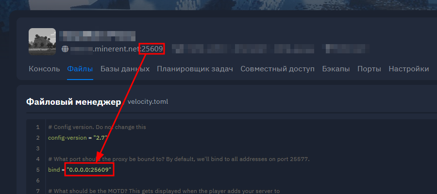 velocity.toml, найдите параметрbindи введите0.0.0.0:<порт>, как на скриншоте.