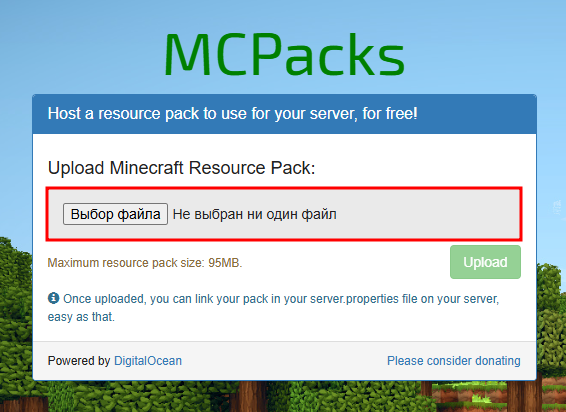- Загрузите свой ресурспак в панель “Выбор файла”