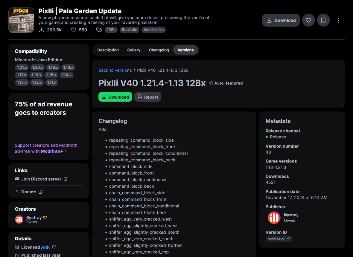 В примере будем добавлять Pixlli x128, но вы можете выбрать любой другой ресурспак. Если вы добавляете ресурспак с modrinth, то вам даже скачивать его не придётся.